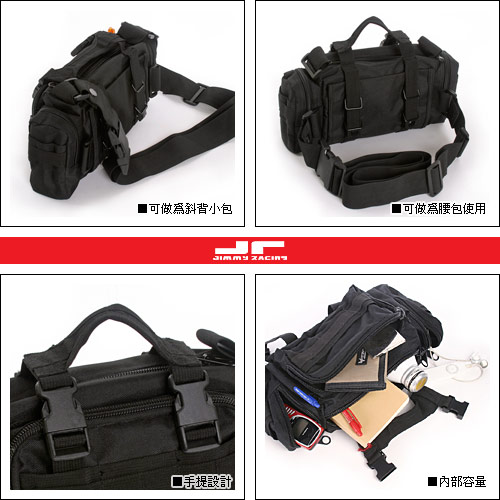JR 三用手提/斜背/腰掛 突擊腰包-黑色 -