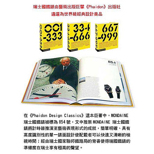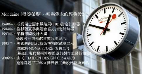 1940年,瑞士著名的工程師hans hilfiker (1901-1993) 任職瑞士國鐵局時,設計的紅色秒針時鐘,清楚易懂的鐘面設計,不同於俗麗裝飾的外觀而呈現富有個性的風格,成為瑞士國家鐵路局(swiss federal railways, sbb)的指定掛鐘。1986年,mondaine 公司取得瑞士國鐵正式標誌sbb的生產和經銷權。至今在瑞士已經超過3000個鐵路車站懸掛此時鐘,每天服務將近一百萬來自世界各地的乘客。 見過瑞士國鐵錶,無不被它簡單、清晰、易讀性佳的設計概念所深深吸引,但您知道瑞士國鐵錶聞名於世的紅色秒針是怎麼 來的嗎?在瑞士,過去沒有大型時鐘可供旅客參考火車進站時間,月台人員會拿著紅色覃形木板揮舞著通知旅客上車,醒目 的顏色及討好的設計,在hans的巧妙連結下,使紅色覃形木板成為瑞士國鐵錶的重要元素之一,將傳統與現代做了完美 的結合,1993年起,更在倫敦設計博物館及紐約現代藝術博物館陸續公開展示,這無疑是對hans設計理念的認同與 肯定。 對到過瑞士的來說,瑞士國鐵錶是您一定要擁有的瑞士經典;對尚未旅遊瑞士但嚮往瑞士融合傳統與現代精湛工藝的人來說,瑞士國鐵更是您不能錯過的精采代表。 |