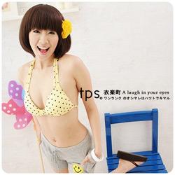 【tps衣樂町】點點蝶結深v集中比基尼 (夏豔黃)