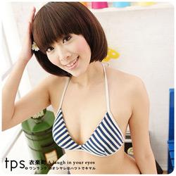 【tps衣樂町】條紋海軍風低胸後綁比基尼 (清爽藍)