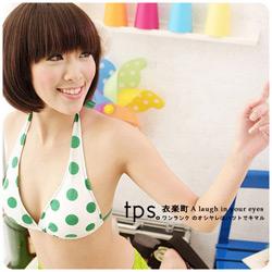 【TPS衣樂町】糖果點點深V綁帶比基尼 (清爽綠) -