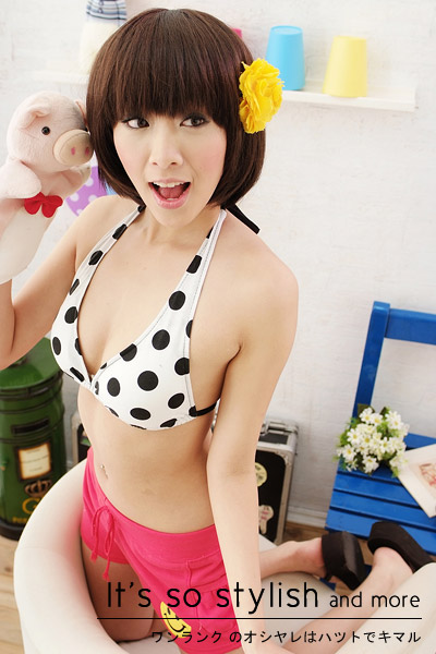 顏色超美粉嫩的糖果點點色系, 深v的設計加上下擺抓皺的部份,讓豐滿胸型大大加分, 另附有可活動式的襯墊,讓甜心可隨意更換喔! |