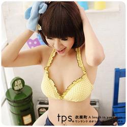 以點點的造型呈現俏麗的活潑的甜美,繞頸肩帶採波浪荷葉造型延伸到胸前,附有罩杯及鋼圈,讓視覺集中呈現完美胸線,罩杯馬上UP!UP!