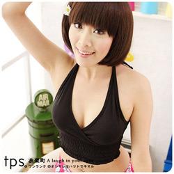 【TPS衣樂町】深V交叉鬆緊綁脖比基尼 (迷人黑) -