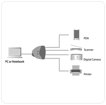 fh600為內置6組(前5後1)ieee 1394連接埠的集線器,支援熱插拔功能。 |